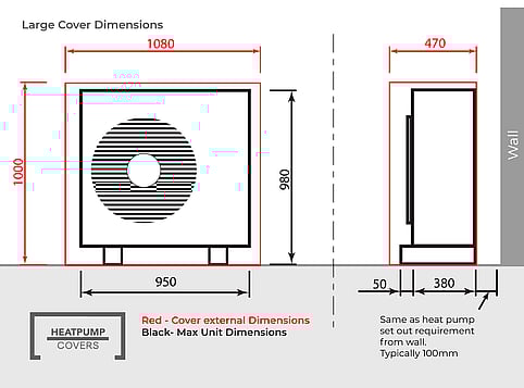 Designed to fit units with a max dimension of 980h x 950w x 380d (plus 50mm in front for mounting feet).